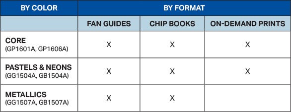 WE HAVE 6,732 PROCESS COLORS, AVAILABLE IN THE FOLLOWING FORMATS: