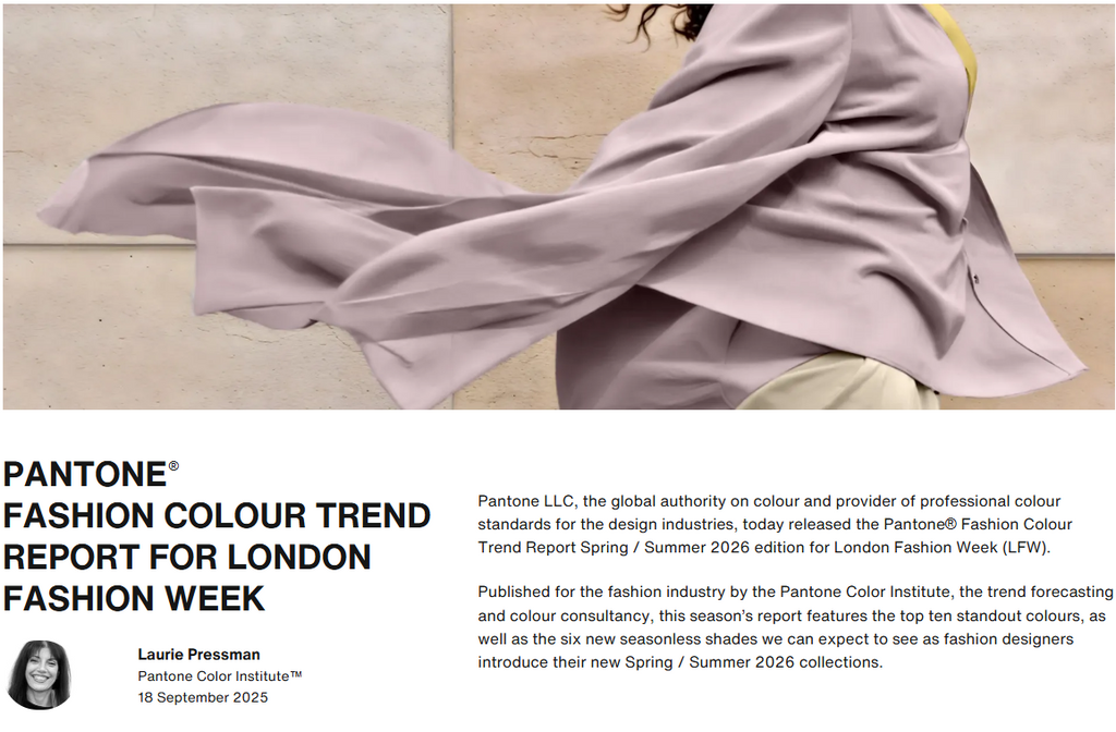 "Colour can be functional while also evoking emotion. Colours for LFW Spring / Summer 2026 blend desirable familiarity with a subtle yet powerful excitement for a small yet elevating move away from convention that fulfills the consumers desire for a personal signature. Giving traditional elements a reinterpreted twist becomes a framework for identity, creating a balance and ease that facilitates individualized expression and effortlessness as well."