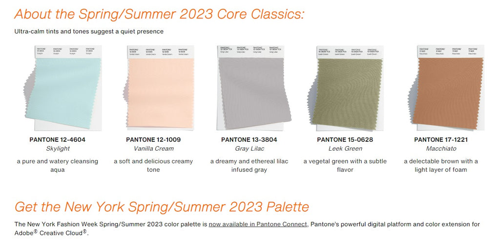 “Colors for Spring/Summer 2023 are recalibrated for the new era we are entering. Blending escapism with reality, wholesomeness, and joy, we embrace the exploration of extreme contrast in mood and color" said Leatrice Eiseman, Executive Director of the Pantone Color Institute. “There is utility and basic-ness to this season’s color story, while at the same time, there is an uplifting vital sense of play that comes through.”