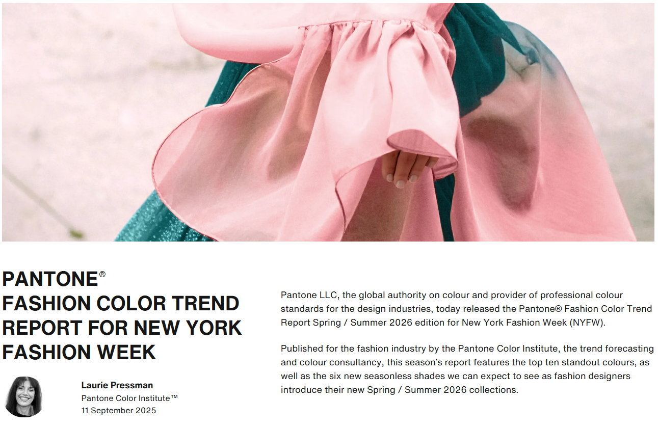 According to Pantone Color Institute experts, designers at NYFW Spring / Summer 2026 fearlessly step into personal expression, a dramatic bulwark against AI and creeping homogenisation. Finding freedom to redefine colour usage, this season's palette contrasts warm familiar shades with more vibrant, stimulating colours and foundational tones.