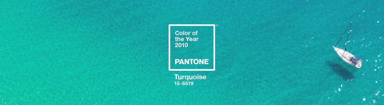 Pantone is pleased to announce PANTONE 15-5519 Turquoise, an inviting, luminous hue, as the Color of the Year for 2010. Combining the serene qualities of blue and the invigorating aspects of green, Turquoise inspires thoughts of soothing, tropical waters and a comforting escape from the everyday troubles of the world, while at the same time restoring our sense of wellbeing.