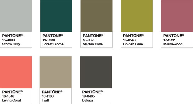 Immediately drawing our attention like a beacon of light, PANTONE Living Coral warmly engages, vivifying the palette as it becomes the focal point in this understated and upscale, composed and cool color grouping.