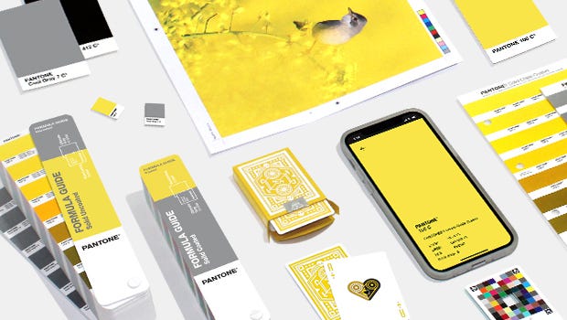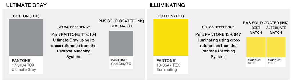 Visit Pantone Connect to get color values for Pantone 13-0647 Illuminating, Pantone 17-5104 Ultimate Gray, and their best PMS cross references: sRGB, Hex/HTML, CMYK, and L*a*b*