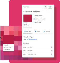Capture, curate and design with PANTONE 18-1750 Viva Magenta in the Pantone Connect digital colour platform, available as an app and on the web. Pantone Connect features four specially curated Viva Magenta palettes and a page dedicated to expert color usage and tips.